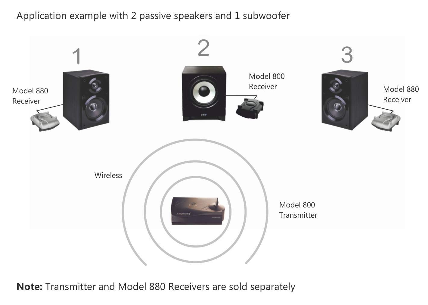 Сделайте беспроводными сабвуфер и активные динамики без длинных уродливых проводов- получите 2 аудиоканала,которые передаются с беспроводного передатчика AMPHONY Т800 (передатчик продается отдельно).Совместим с активным сабвуфером любой марки и активными громкоговорителями.