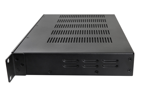 Размер шасси1U. Усилитель поставляется со съемными ножками и ''ушами'' для установки в стойку.