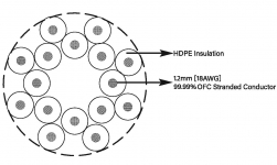 HDPE - Ультра низкие потери, низкая емкость полиэтилена высокой плотности (диэлектрическая изоляция проводов). HDPE - диэлектрическая изоляция из полиэтилена с низкой плотностью, низкой емкостью и высокой плотностью для проводников. Низкий коэффициент трения, легко протягивать (внешняя оболочка из ПВХ). |