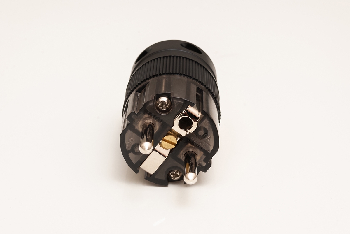 Штепсель Надежная, легкая рукоятка 16А, 250В типа Schuko,немагнитная латунь, родиевые штыри и заземление