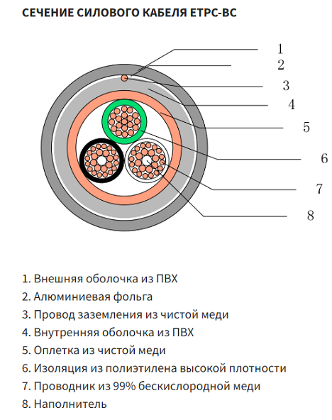 Диаметр кабеля: прибл. 16,7 мм. ETPC-BC Силовой кабель (цена за один метр) |