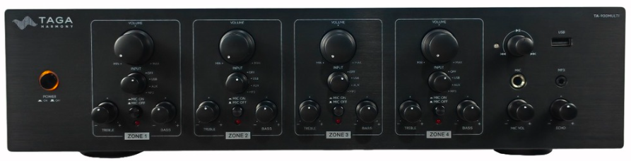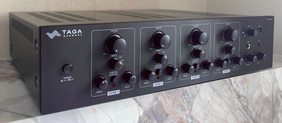 Позволяет создать экономичную многокомнатную аудиоустановку и воспроизводить разную музыку в каждой из 4 зон (с 3-х входов) с независимым управлением громкостью и звуком для каждой из них, а также транслировать голосовые сообщения в выбранные зоны одновременно.